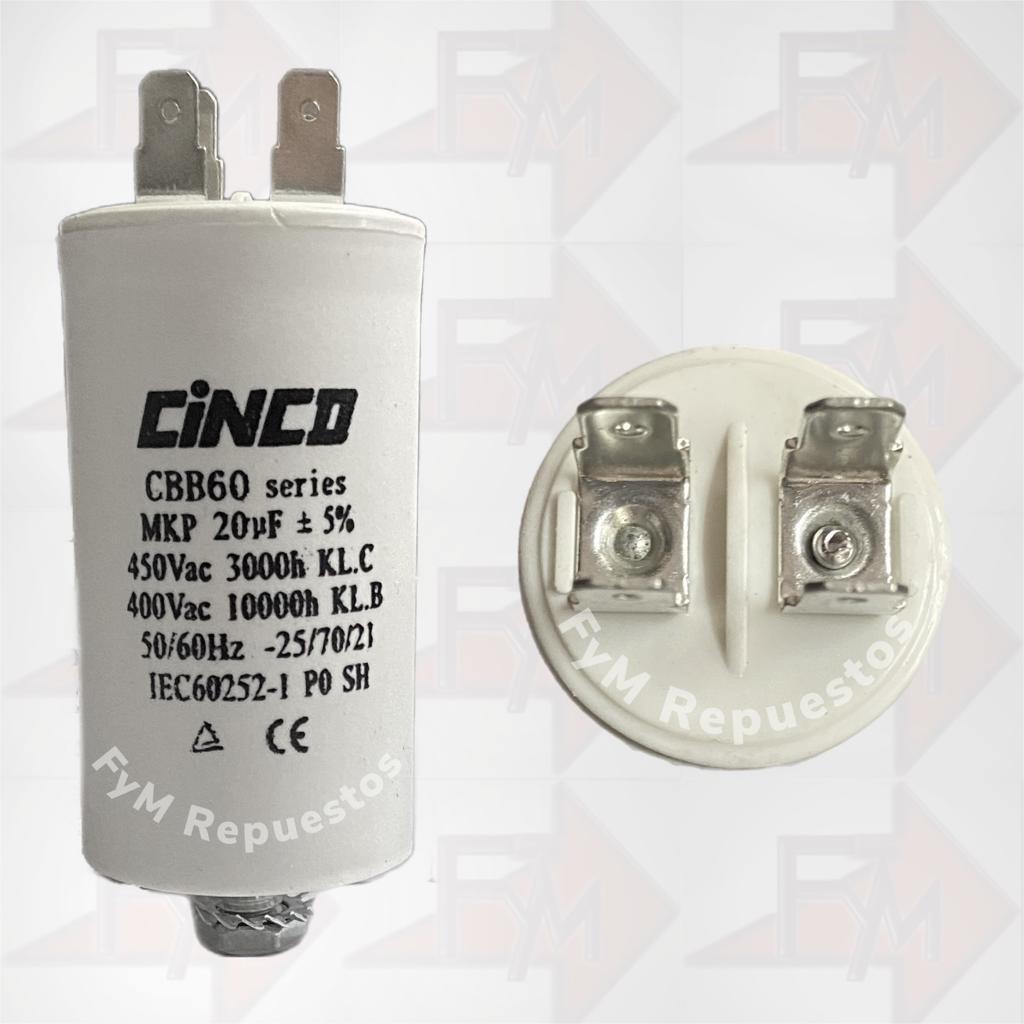CONDENSADOR CINCO PERMANENTE 20UF 3/4 – 1HP 450VAC