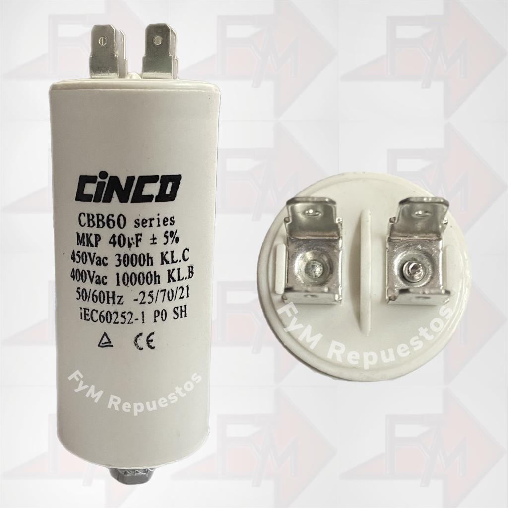 CONDENSADOR CINCO PERMANENTE 40UF 1.5 – 2HP 450VAC