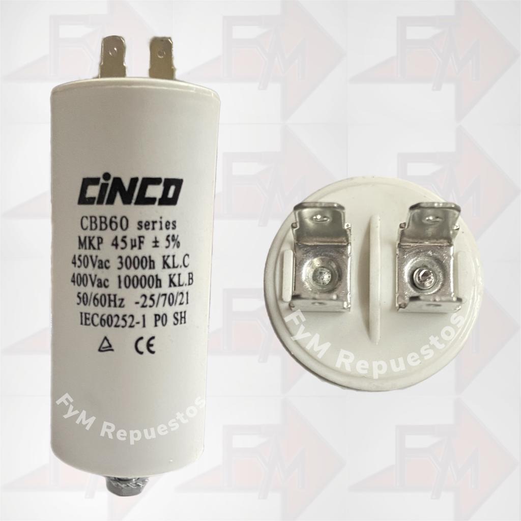 CONDENSADOR CINCO PERMANENTE 45UF 2 – 2.5HP 450VAC