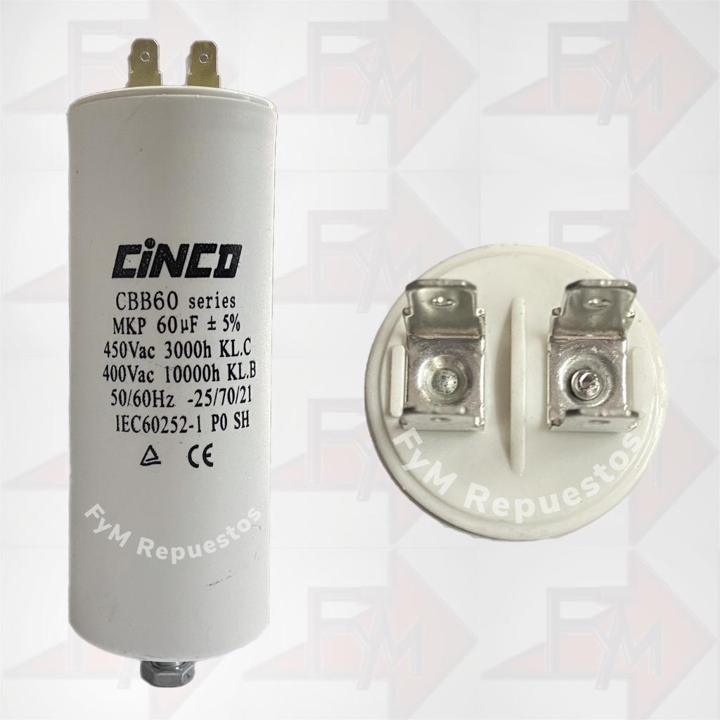 CONDENSADOR CINCO PERMANENTE 60UF 3.5 – 4HP 450VAC