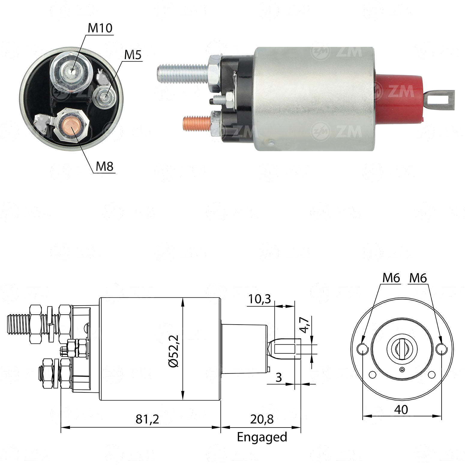 SOLENOIDE ZM PRESTOLITE M100R VOLSKSWAGEN 40MM 2P 12V